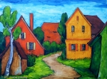 J860 - Orangenes Dorf Gouache 50 x 62 cm signiert, datiert 1931 |